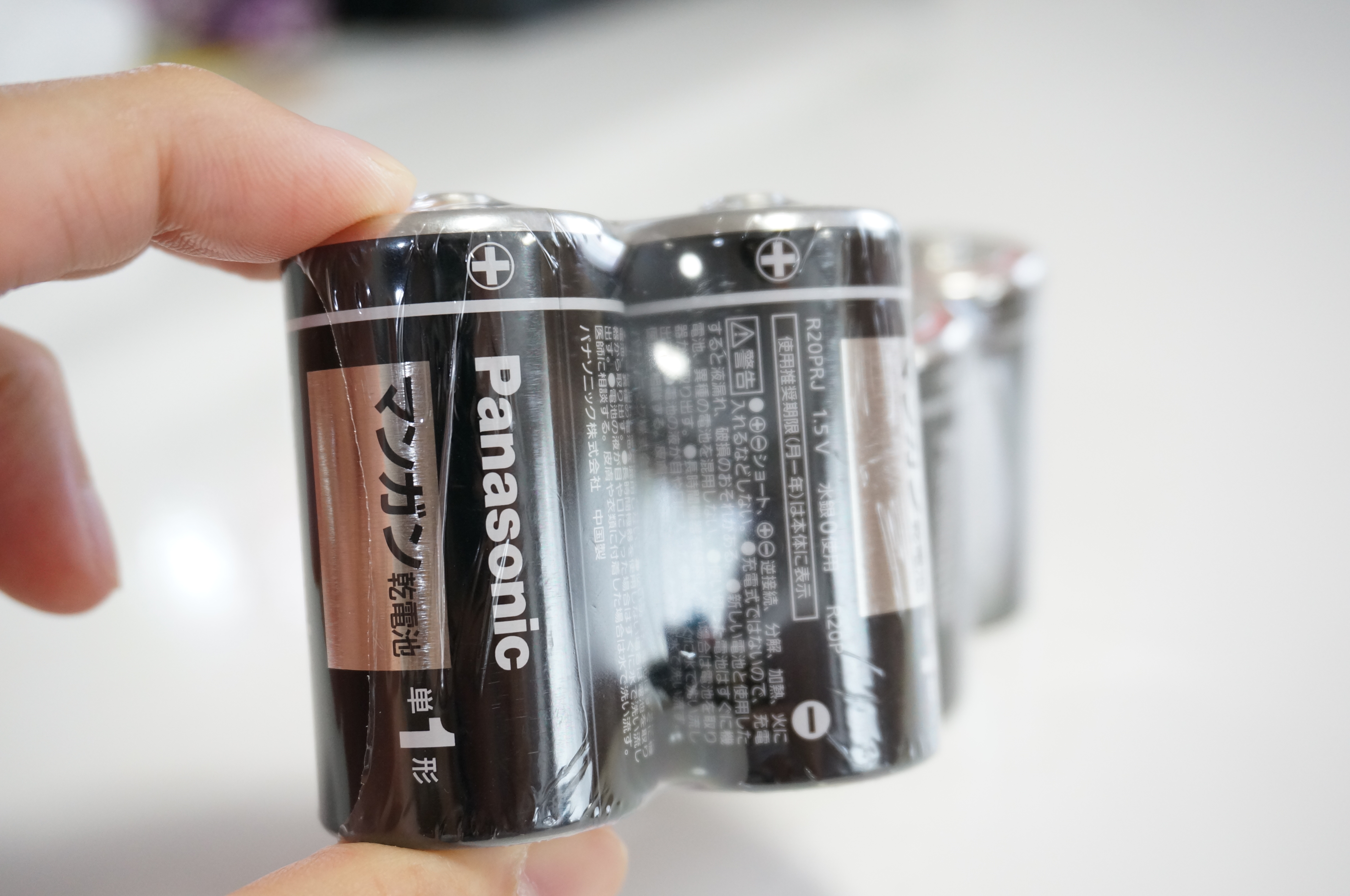 当時のセオリーどおり、マンガン電池を用意しました。単一4本というの燃費の悪さはさすがの昭和車です。いざ、電池をセットしてキーを回してみます……。