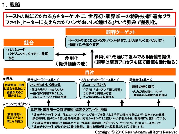 - 競合(お客様の選択肢):バルミューダ、パナソニック、タイガー、象印 など