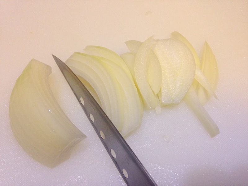 2.玉ねぎも、5mm幅で刻んでおきます。