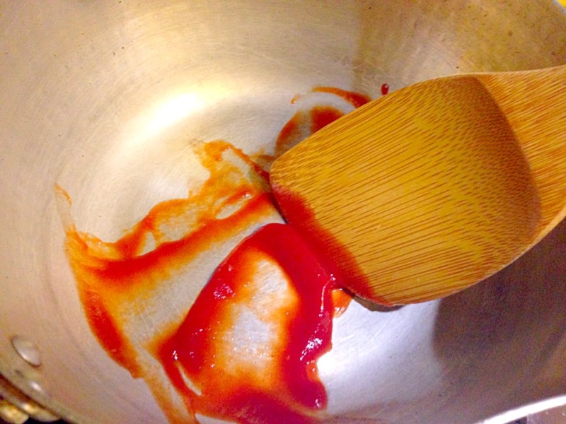 5.鍋にケチャップを入れ、火をつけ「超」弱火にします。