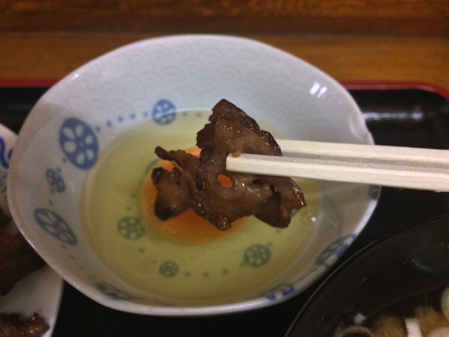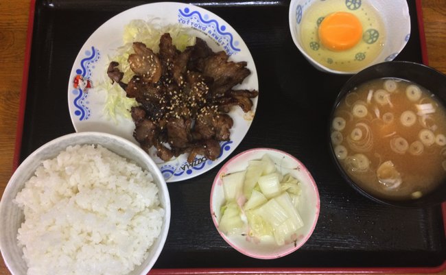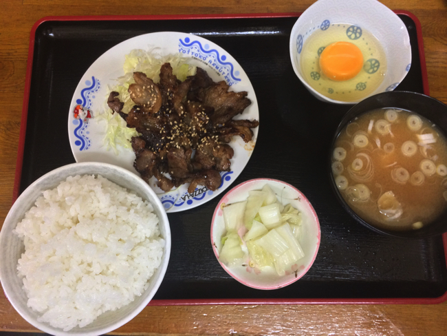 いわゆる普通の焼肉定食のように、ごはんやみそ汁付きで、さらに生卵まで付いてくる。
