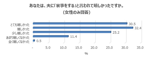 しかし、そんな意見が目立つなか、その家事を手伝うとの申出を「嬉しい」と感じている妻は88.1%もいました。「気を遣ってくれていると感じた」(46歳・女性)「自主的な発言がうれしい。私へのいたわり、やさしさを感じることができた」(46歳・女性)など、多くの女性は断ってはいるものの内心では喜んでいることが分かりました。