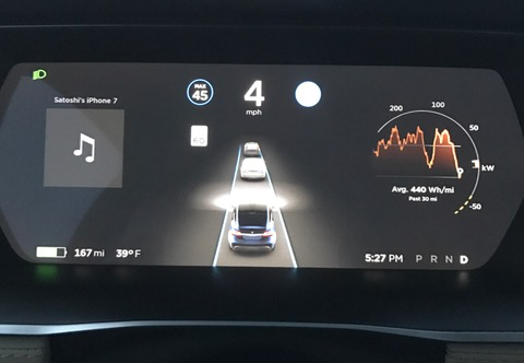 Tesla Model X の自動運転は、「完全自動運転(レベル4)」や「加速、操舵、制動の全てをシステムが行い、システムが要請した場合にはドライバーが対応する(レベル3)」ではなく、「加速、操舵、制動のうちの複数をシステムが行う(レベル2)」との中間にあります。