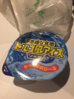 北海道に来て、アイスは2度食べたが、2回とも「バニラブルー」という60円くらいのアイス。だがしかし! 今回は「トルコ風アイス」140円!