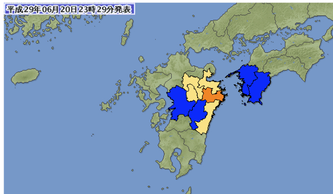 6月20日午後11時27分ごろ、大分県豊後水道を震源とする地震があり、大分県佐伯市で震度5強(M5.0、深さ40km)を観測した。