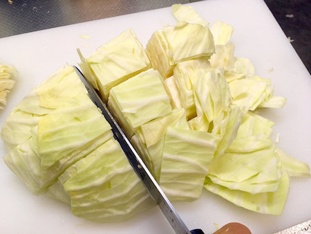 で、おすすめしたい料理が、「鶏もも肉とキャベツのくたくた味噌煮(モツ鍋風)」これは、味噌煮込みのモツ鍋風料理です。「モツ」に抵抗がある方でも食べれるように鶏もも肉を使い、出汁に白味噌、ニンニクを合わせた煮汁に、キャベツと豆腐をぶち込んで、グツグツ煮るだけ。くたくたに軟らかくなったキャベツとにんにくドギツイ味噌の味と香りがよく合います。