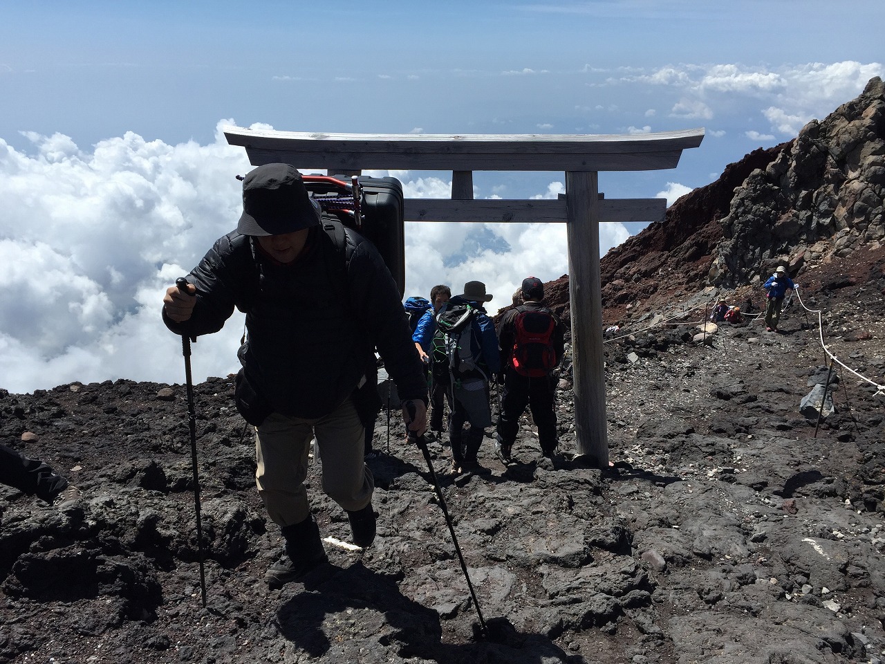 人生で初めての富士登山。しかも15kgの機材を背負って登るのは、想像していたより何倍も大変でしたが、約8時間かけて富士山頂、頂上浅間大社奥宮にたどり着くことができました。