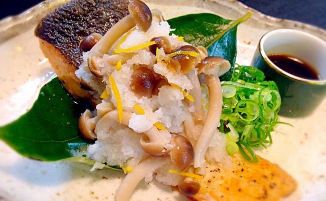 「しゃけ」をサラダ油で焼きますが、コッテリした味ではありません。しめじ、柚子、大根おろしをグチャ混ぜにしたものをのせ、ポン酢をぶちまけて食うのであっさりです。油コテコテ、消化不良になる「しゃけバター」なんかではありません。