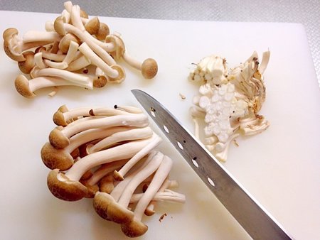 1.しめじは、根元を切り落とし、ばらします。