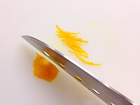 3.柚子の皮を薄く刻みます。