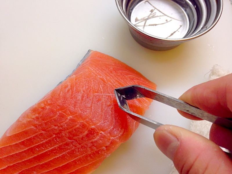 骨抜きでシャケの写真の位置の骨を抜きます。