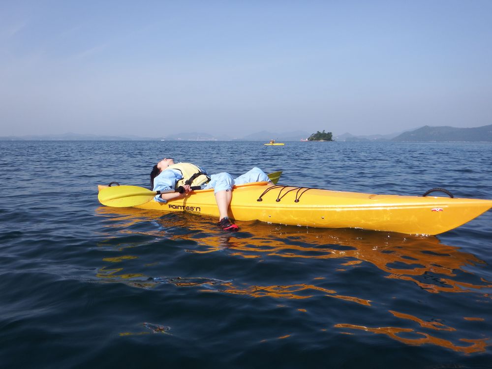 ライフジャケットを着けて海に浮かぶ感覚は最高です。カヤックにはエンジンなどは付いていませんので、自分の腕力だけが頼りです。手を休めれば進まないし、強く漕げば波を切って前に進みます。1時間も漕げば、普段使っていない筋肉に心地よい痛みが訪れる事でしょう。波の音、潮の匂い、海水温、照り付ける太陽、ありとあらゆる感覚を総動員すると新たな発見があるはずです。運が良ければ大村湾に生息するスナメリにも会えるかも!