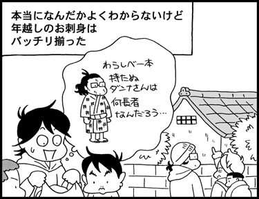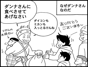 今回のテーマは「施し」。ダンナさんのおかしなパワーが炸裂です!