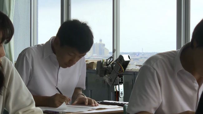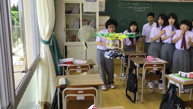 次の休み時間のシーンでは、お弁当を持ってくるのを忘れたのでしょうか、ドローンを使ってお弁当を教室まで飛ばす生徒が登場。