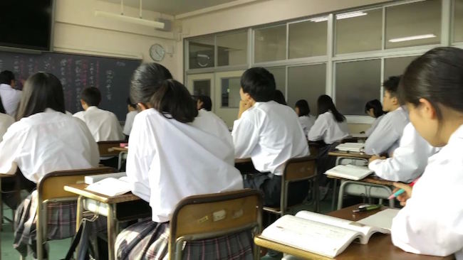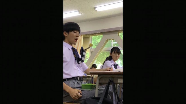 教室の仲間で入ってきた!周りの生徒たちも「ヤバい、ヤバい」と驚きを隠せません。