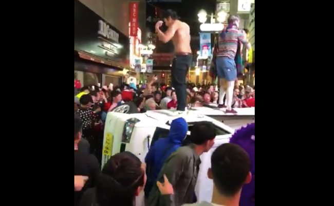 警視庁によると、10月28日午前1時ごろ、渋谷のセンター街付近で軽トラを横転させたとして、集団的器物損壊の疑いがもたれている。