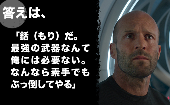 Q1.「宇宙最強の相手と戦って!」と依頼されたら、ステイサムは何て言う?