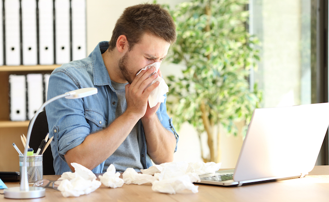 ところが、インフルエンザだというのに出社してくる者もいます。「どうしても仕上げなければならない仕事があるから」とか「有休を使いたくないから」など理由は様々。