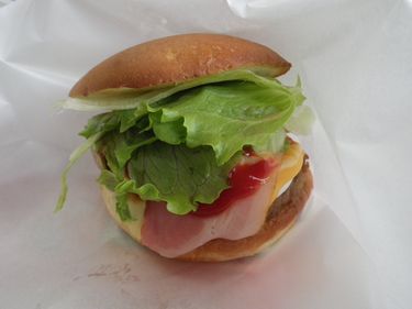 パティも初めての味だったので思わずお店の男性に聞いてみたところ、ミートローフを使用しているとのこと。ベーコンの味もなかなかです。