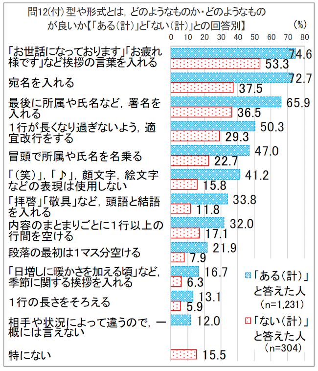 仕事上やり取りするメールなど、改まったメールの決まった型や形式とはどのようなものであると考えるかを聞きました。