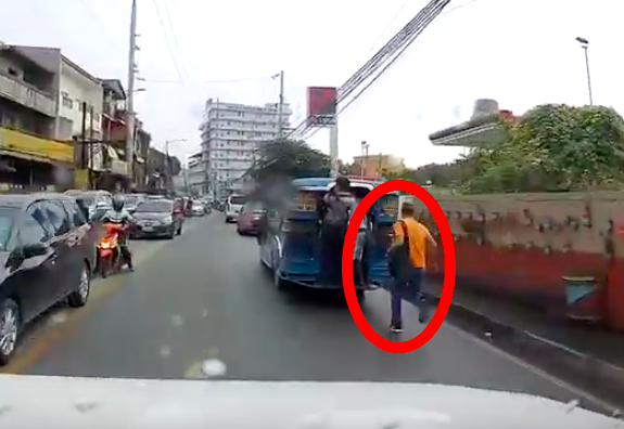 こちらの動画では、後ろが開放されているタイプのバスに飛び乗ろうとする男性がいて・・・