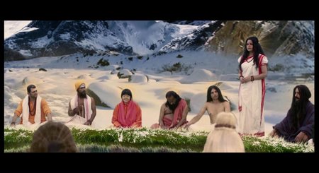 波動が高いといえば聖者たちのセリフです。脚本にパイロット・ババさんも入っているようですが、セリフがIQ500くらいありそうな深遠で叡智にあふれた言葉ばかりで、それもスピーディにやりとりされるので、一回観ただけではなかなか頭に入ってきません。脳のレベルが追いついていない感じです。ボリウッドというと歌や踊りのイメージがあり、一瞬歌い出さないか期待したのですが、歌はなくても言葉だけでも詩的で芸術的で、心の琴線が震えます。