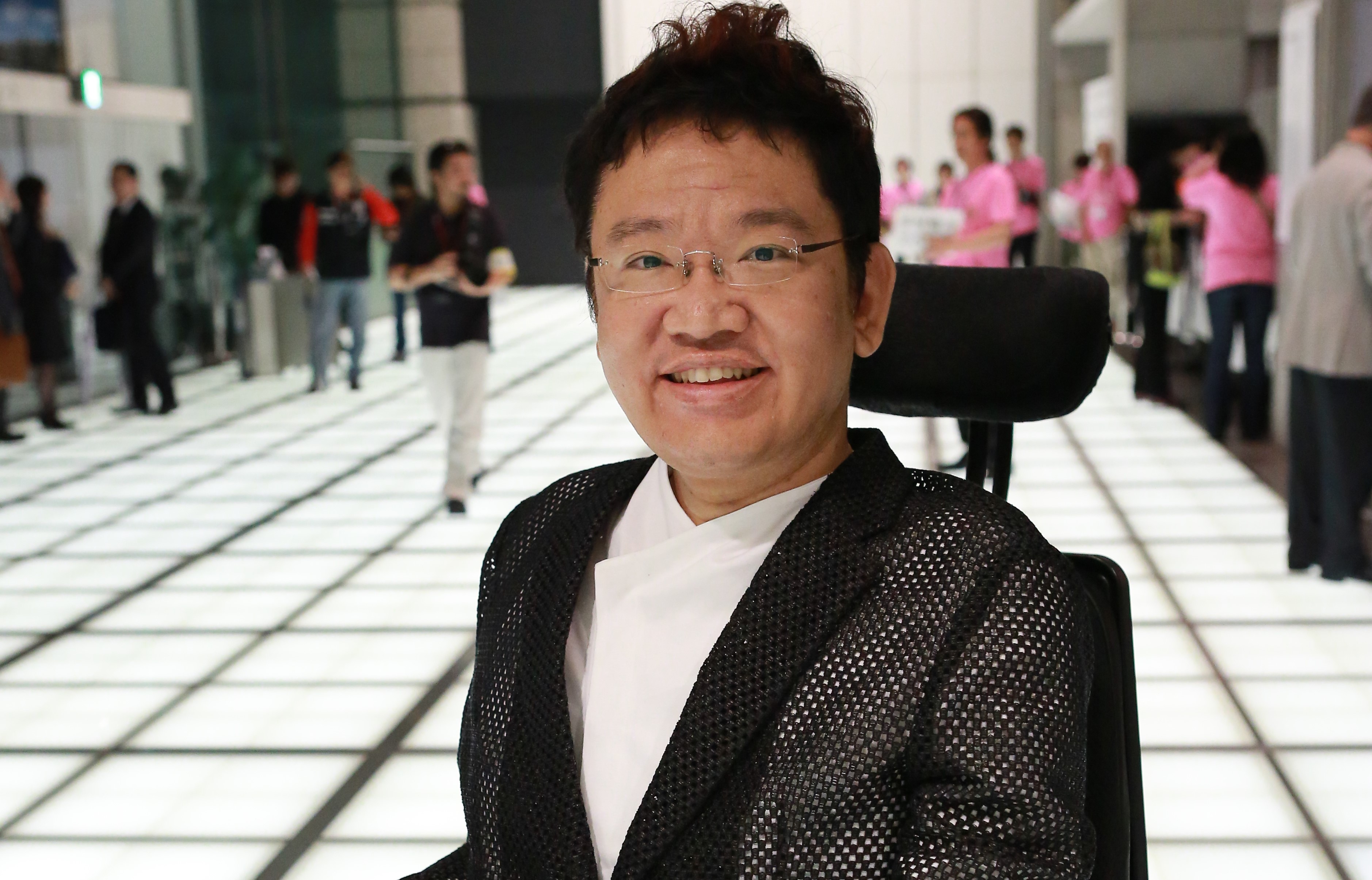 そんな『ゴールドコンサート』を主催するのは、貝谷嘉洋さん。NPO法人日本バリアフリー協会の創始者で、自身も筋ジストロフィーのため電動車いす生活を送る障がい者だ。
