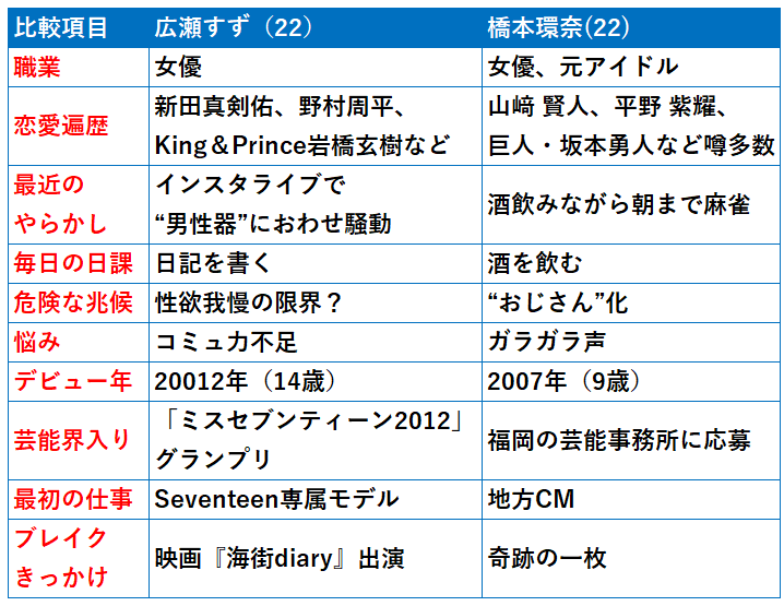 「過去に一部のメディアが広瀬さんが橋本さんを嫌っていて、橋本さんの名前が出ると『環奈じゃ相手にならないよ』と言うのが口癖になっていると報じたことがあります。実際にそこまではっきり言っていたかどうかはわかりませんが、お互いに意識していたことは事実のようです」