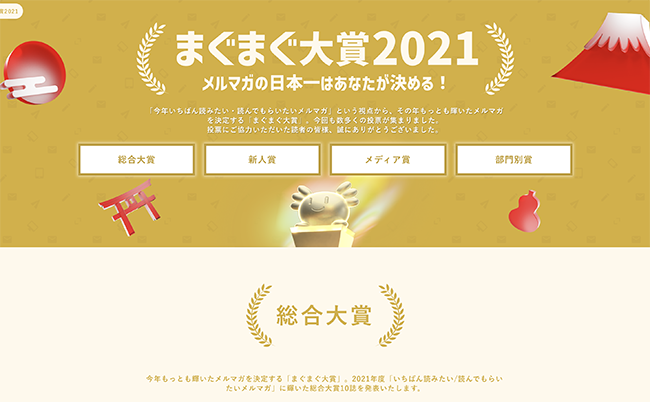 まぐまぐ大賞2021の受賞一覧はこちらからご確認いただけます。