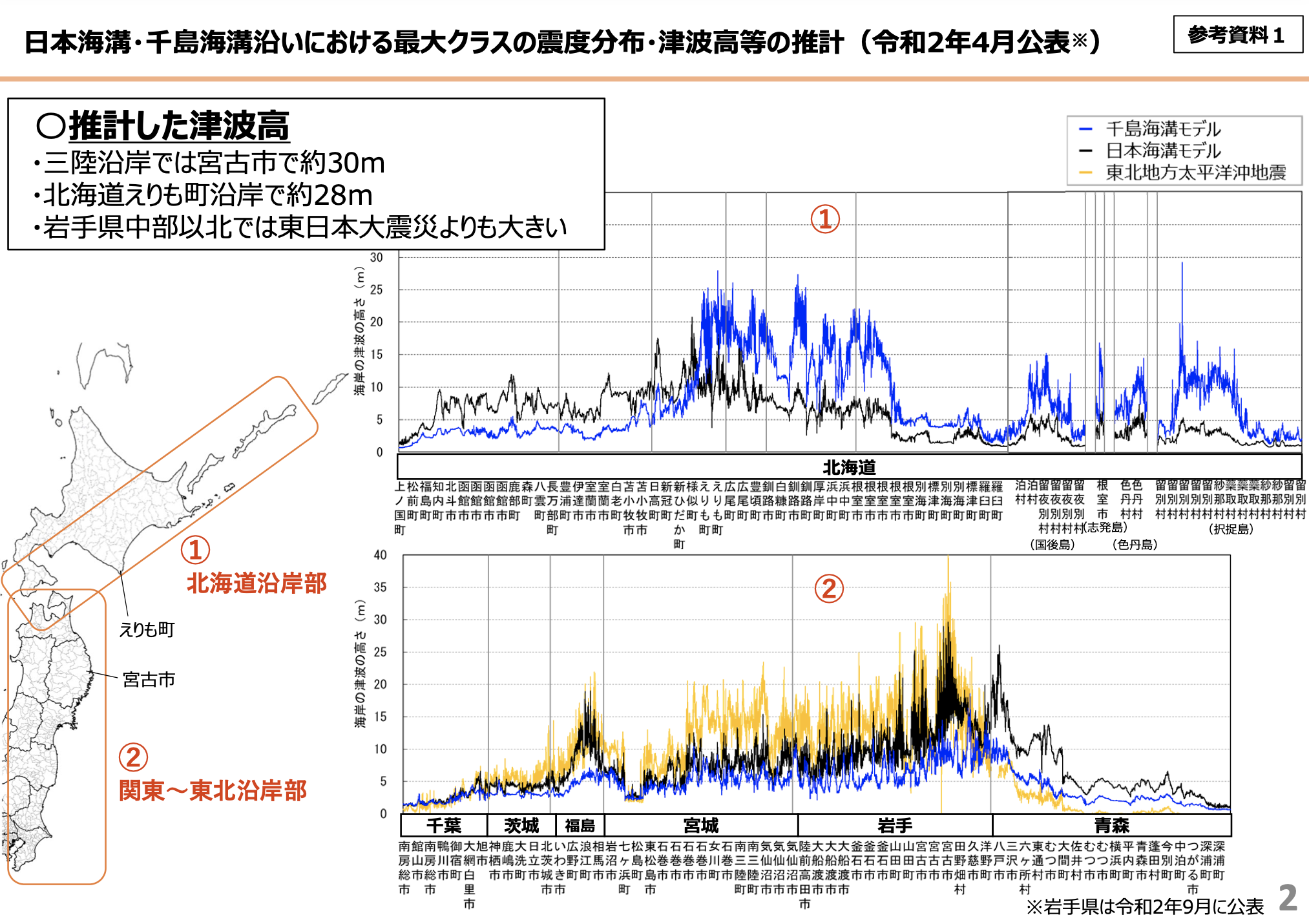 今回の発表は、内閣府の中央防災会議内に令和2年4月より設置された作業部会「日本海溝・千島海溝沿いの巨大地震対策検討ワーキンググループ」がまとめたもので、これまで9回 の会合が開かれ、被害想定が初めて公表された。