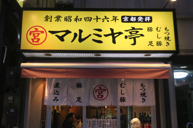この二つを看板メニューとする店が昨年12月、東京・御徒町にオープンした。店名は「マルミヤ亭」。この上野・御徒町界隈は韓国系の飲食店が多数ある。老舗の焼き肉店から、家庭料理、チェーン系の韓国料理店と、利用動機に合わせてさまざまな“韓国”を楽しむことができる。そんな中にあって「マルミヤ亭」はこのエリアの“韓国料理”を一層奥深いものにした。黄色の背景に黒い文字とよく目立つ看板で、「創業昭和四十六年」「京都発祥」「むし豚」「豚足」を文字が並んでいて、長く庶民に親しまれている飲食店であることが伝わってくる。