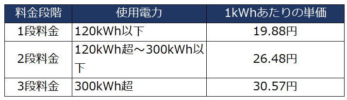 となっています。電力量料金は、「1kWh」を基本の単位として単価が設定されています。