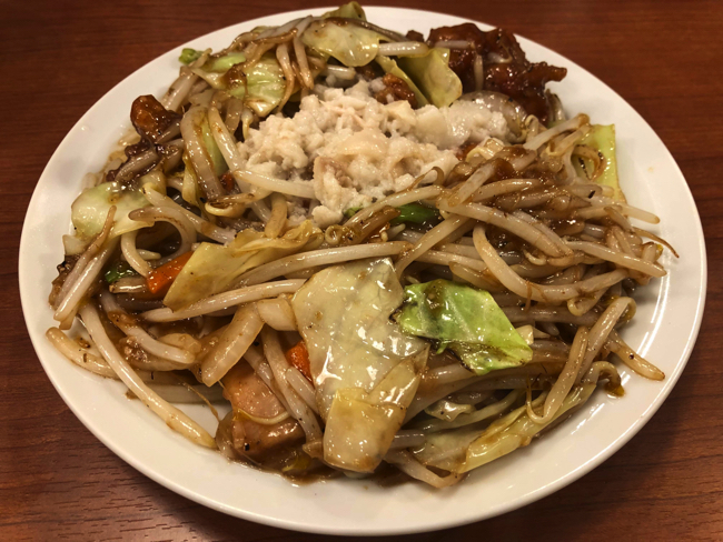 肉野菜炒め。背脂たっぷりラーメン二郎系の野菜炒めが特徴