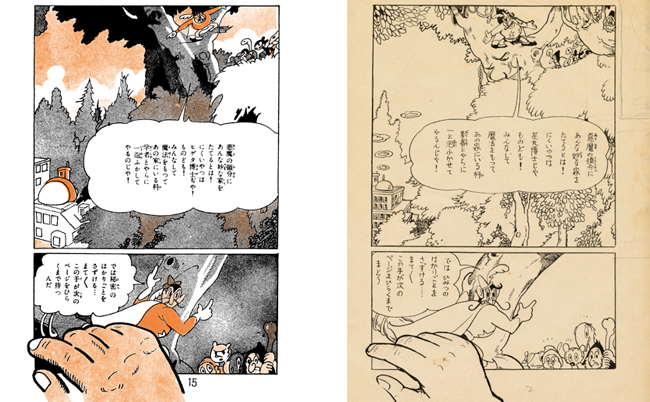 『魔法屋敷』三宝書房版(左)と、藤子が秘蔵していた未発表版(右)。今回の本には2バージョンとも収録されている ©️TEZUKA PRODUCTIONS