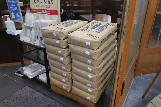 店舗に入ってすぐの場所に「粉」を置いて「製麺所」をアピール