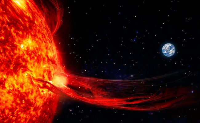 黒点が増え、白斑もさらに増え、太陽の活動が活発になると、太陽フレアと呼ばれる大爆発が盛んに起こり、炎のように明るいプロミネンス(紅炎)が宇宙に向かって吹きだされます。太陽フレアの発するエネルギーは凄まじいもので、これが放出した電磁波やプラズマ、高エネルギー粒子などが地球を襲うと(数日後)、磁気嵐が発生したり停電が起きたり、人工衛星の機能に障害が起きたり、様々な災害が発生するのです。