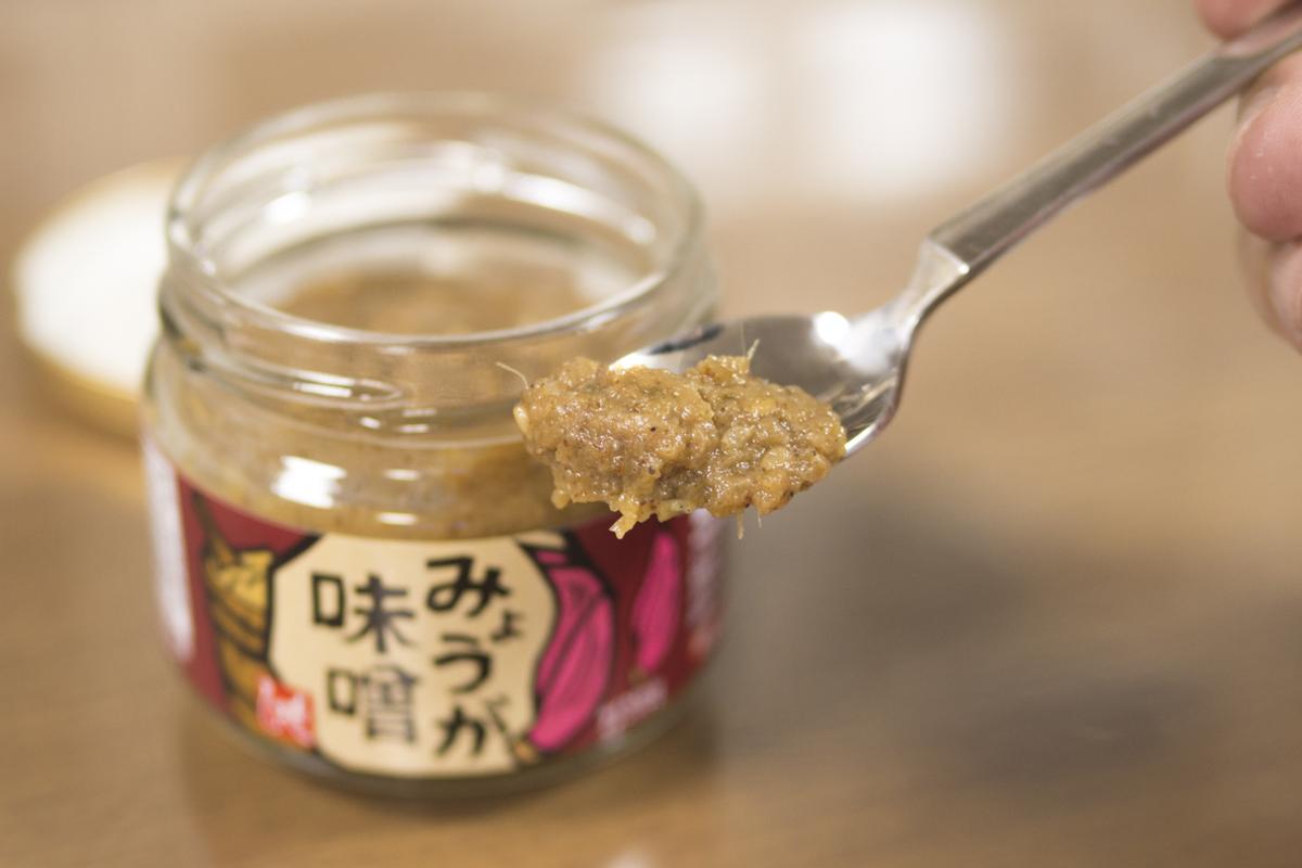 原材料を見てみると麦みそに国産みょうが、きゅうり、長ねぎ、ごま、かつおぶしエキスなどが入っているとのこと。