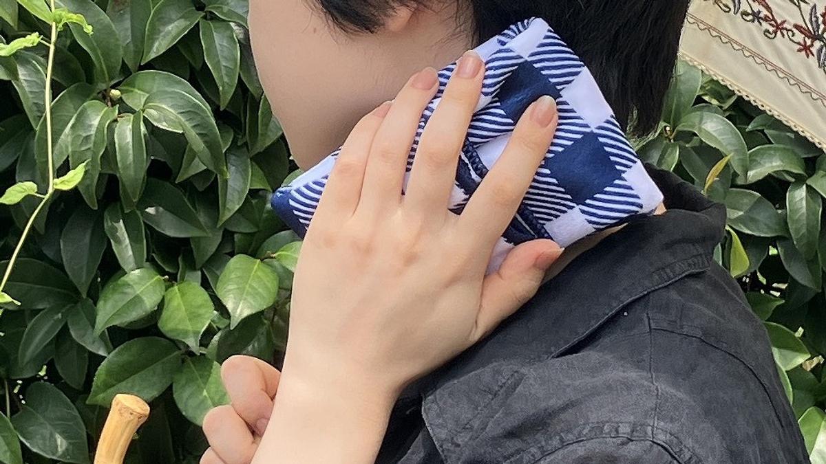結び目がないからかさばらないだけでなく、裏表どちらの面でも冷たさがしっかり伝わります。