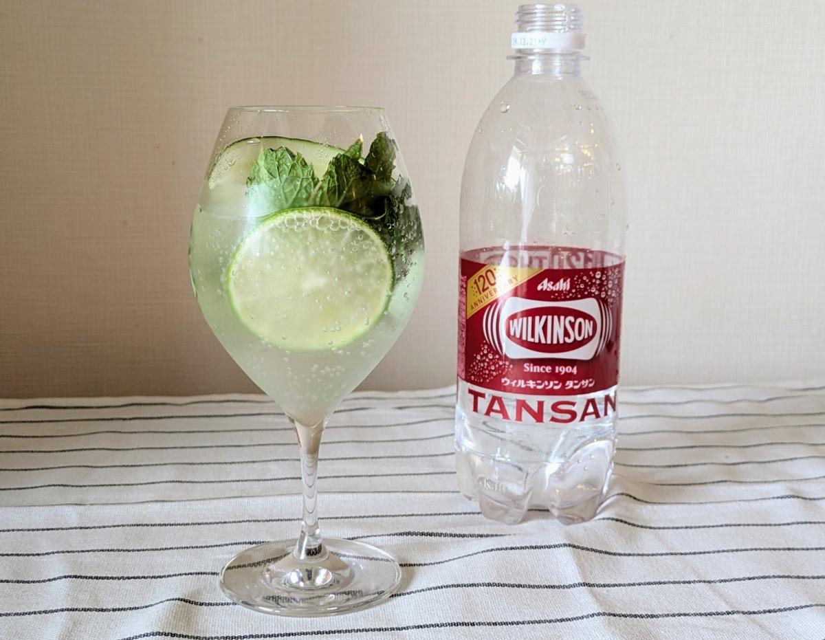 炭酸水でグラスを満たすと、すぐにミント、ライムの香りが漂ってきて、なんとも涼し気。