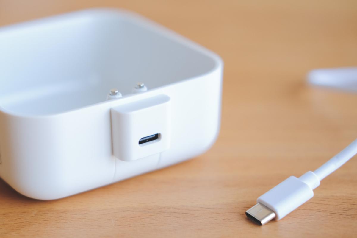 充電はUSB Type-Cに対応。満充電から約30回(自動タイマーで4分毎に停止)ほど連続で使えます。