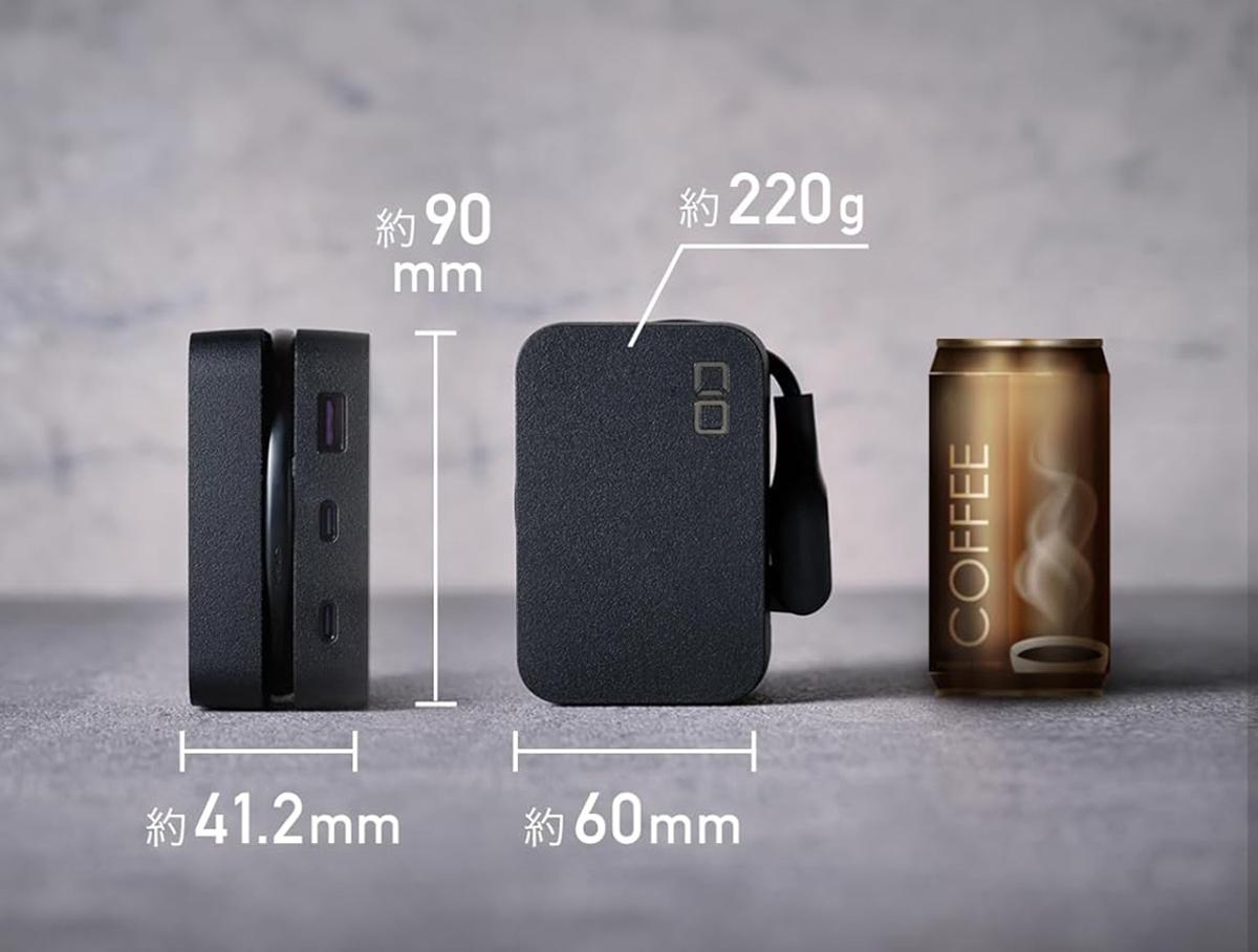 そしてこれだけのポート数・使い勝手を持ち合わせていながら、9 × 4.1 × 6cmのコンパクトさを実現。キャリーケースの隙間にでも入ると思います。