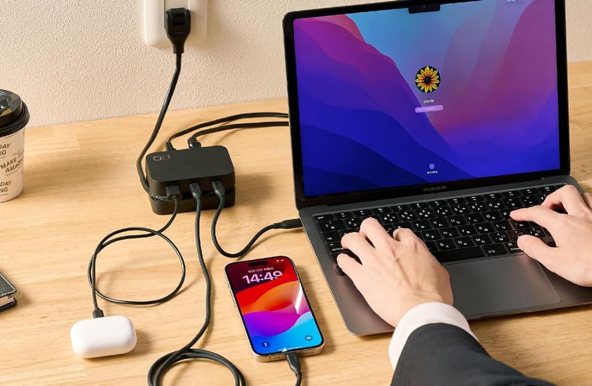 また、複数ポートで充電した際は給電する電力を自動で最適化してくれるため、安全なのはもちろん、デバイスたちのバッテリー寿命にもいいんです。