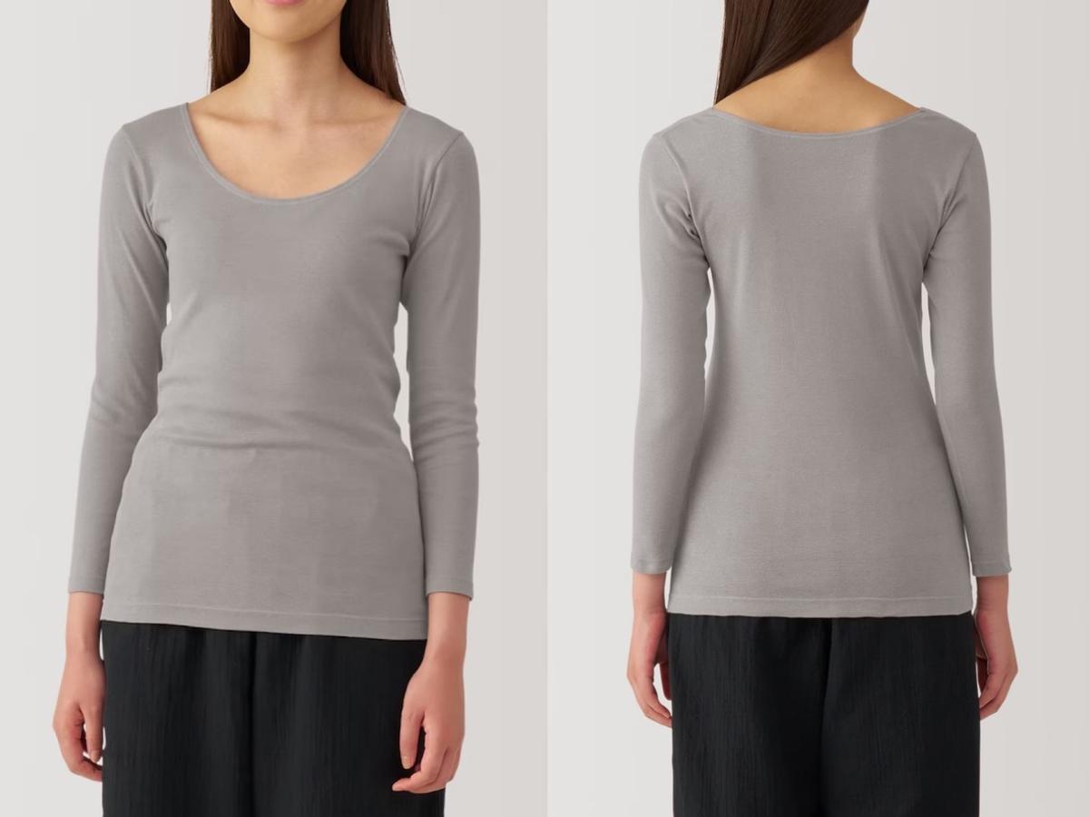 最後に紹介するのは、言わずと知れた名作の「あったか綿」のインナー、「あったか綿 Uネック八分袖Tシャツ」です。