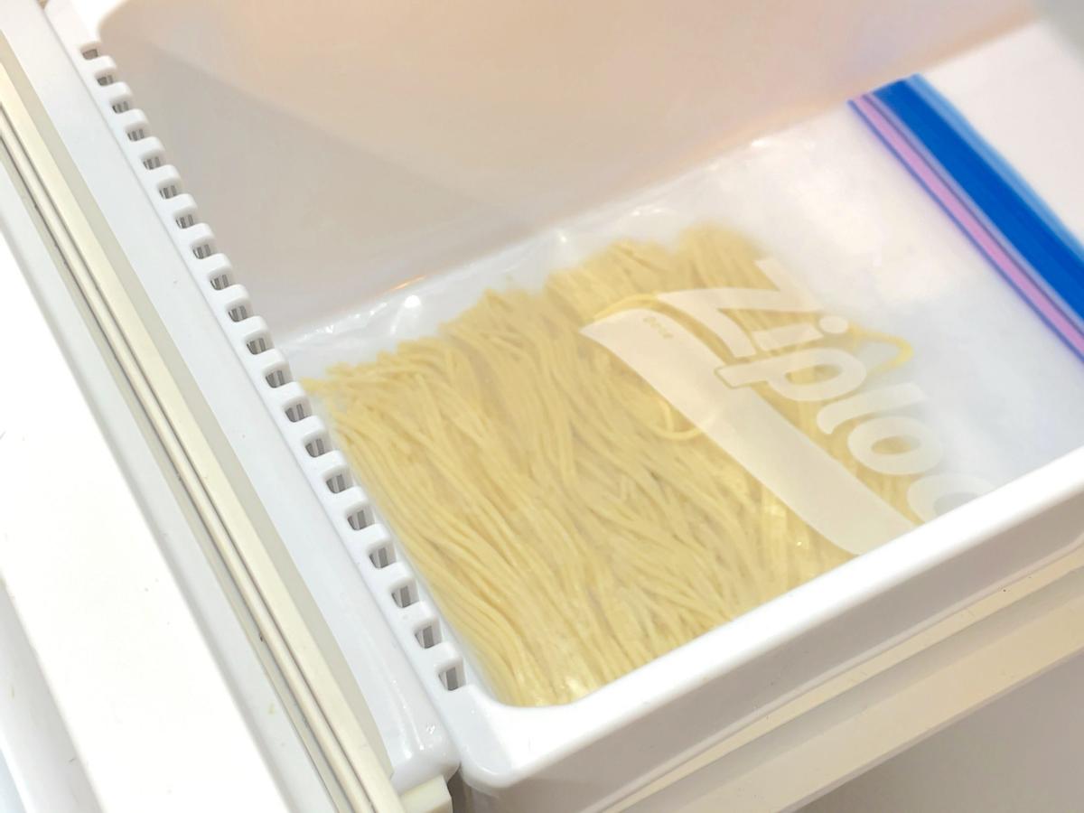 麺の表面を油でコーティングしておくと、解凍後にほぐれやすくなりますよ。