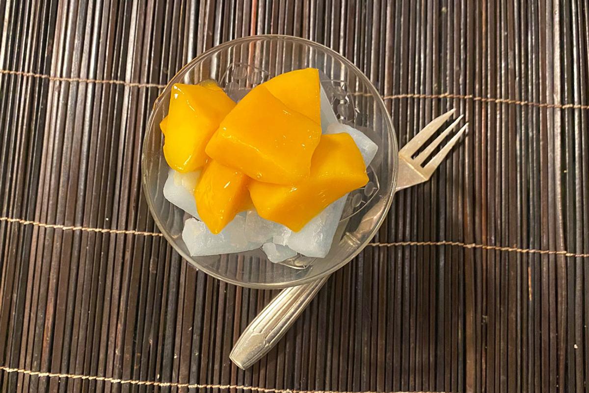 デザートは冷凍で買ったマンゴー。まさか!と驚くほど美味しい。写真の3倍量あって、なんと@138円なり。何処産なのか不明だが、遠い国から運ばれてきたのだと思う。(売り切れるとまずいので、買った店は内緒! ケチな私でごめんなさい)