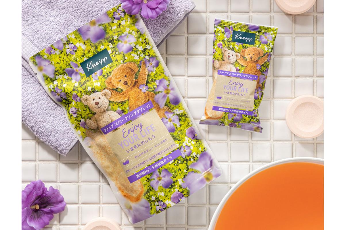 今年新たに仲間入りした「クナイプ スパークリングタブレット スミレの香り」は、甘くみずみずしい香りが特徴的。
