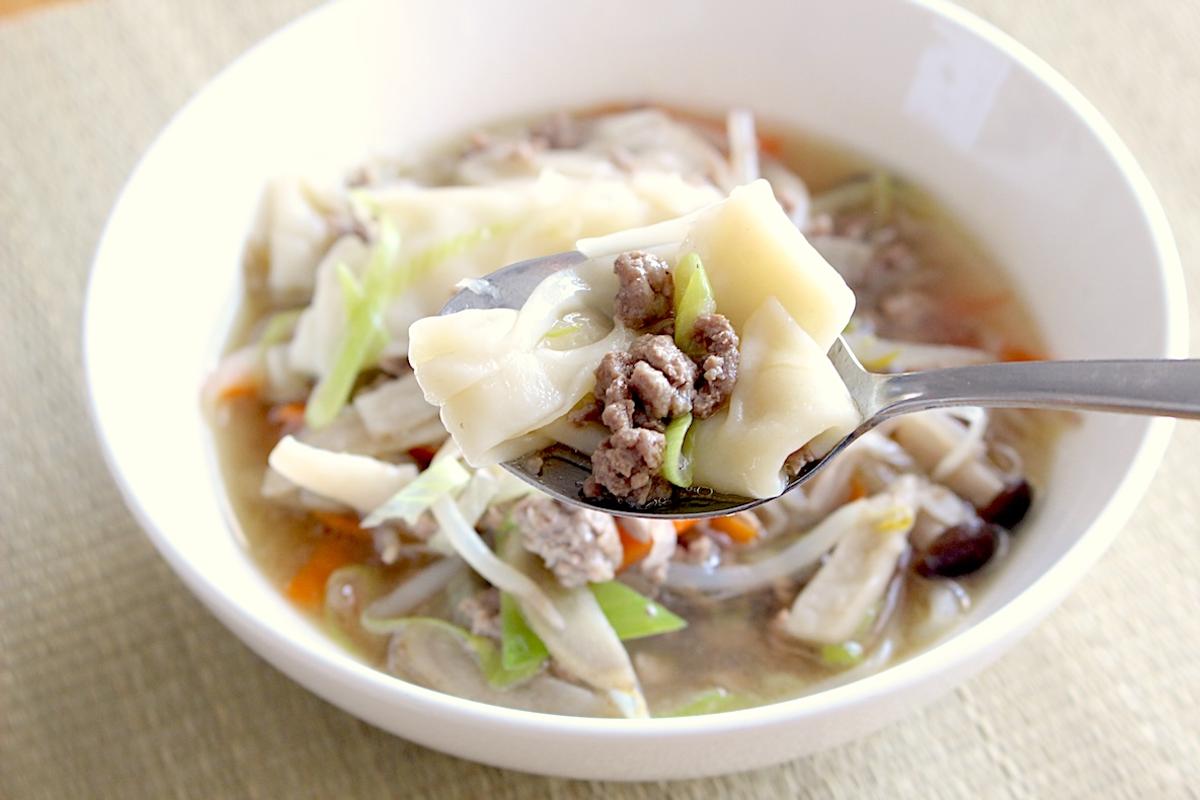 我が家でもよく作るのですが、なかでも最近ハマっているレシピがあるんです。その名も「包まないワンタンスープ」。