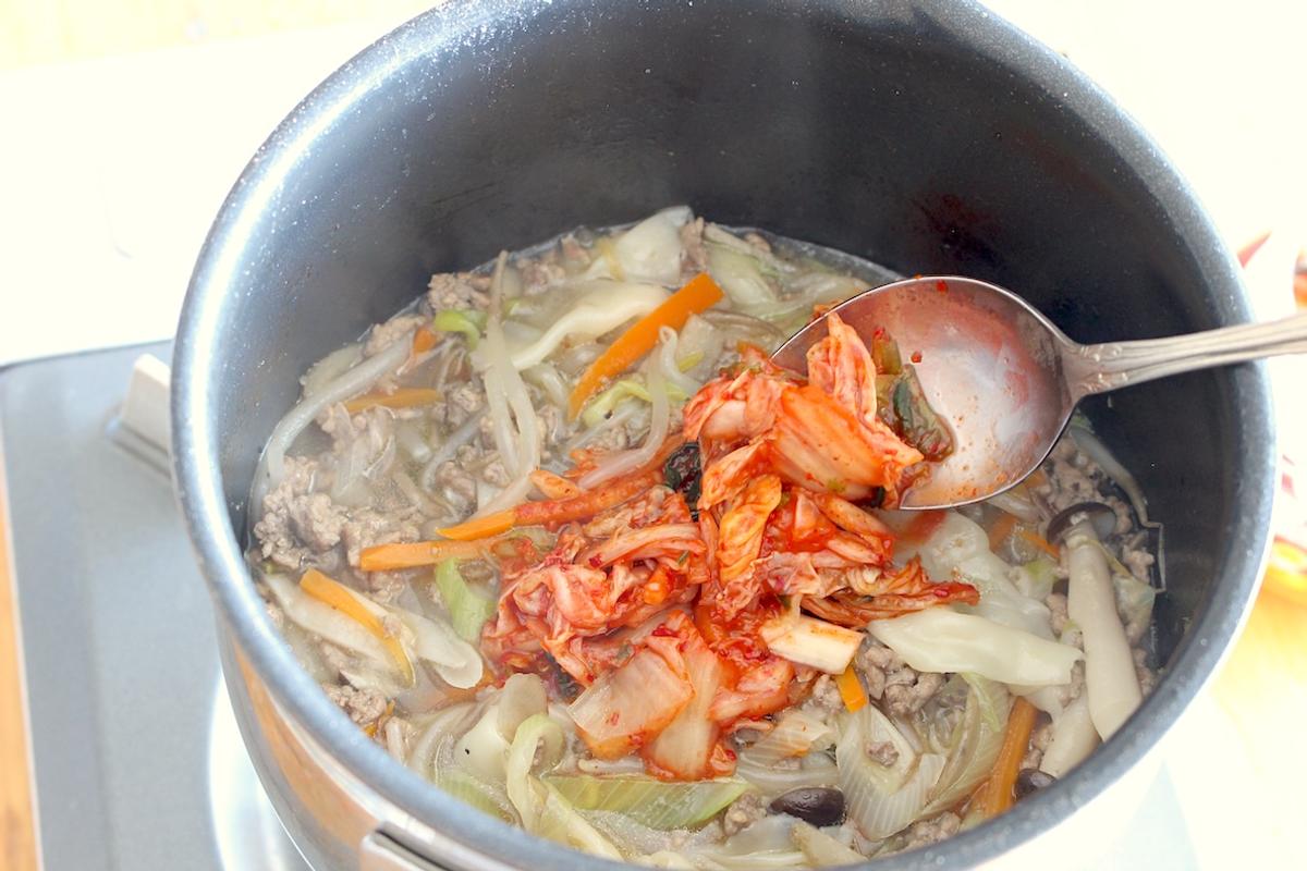 また、キムチを入れれば「包まないキムチワンタンスープ」に。辛さが加わることで、体がより温まる〜!