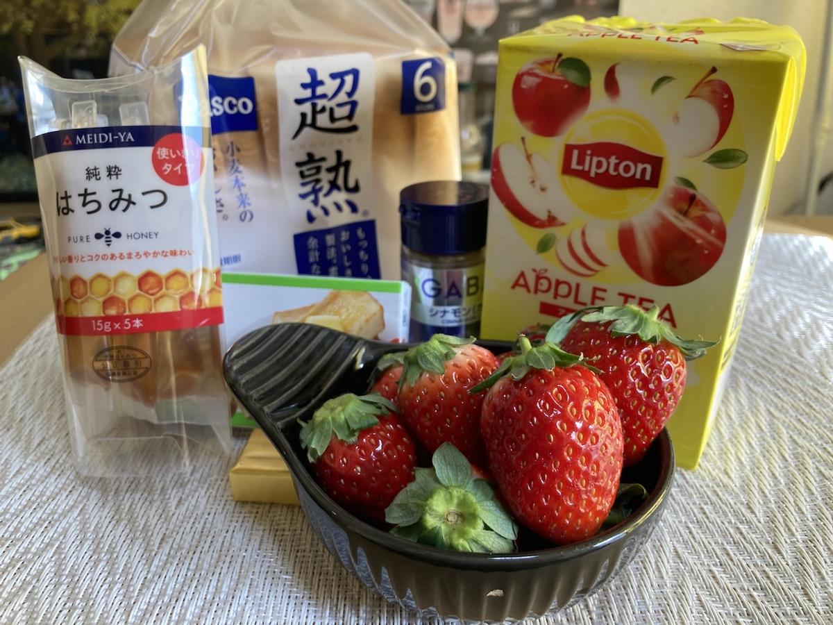 ティーバッグ、食パン、バター以外はトッピング用なのでお好みでアレンジOK。