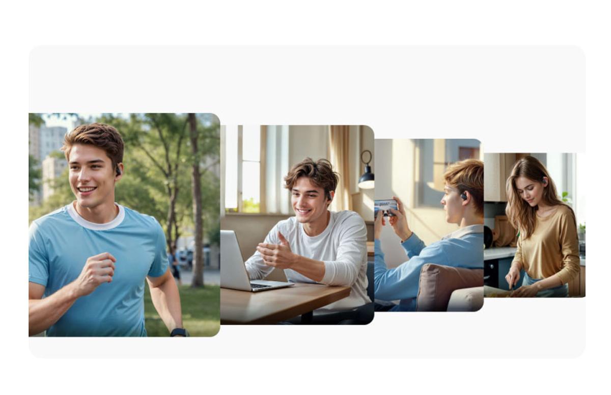 オープンイヤー型の特徴は、“耳をふさがない”ことで周囲の環境音を遮断することなくイヤホンからの音を聞けること。